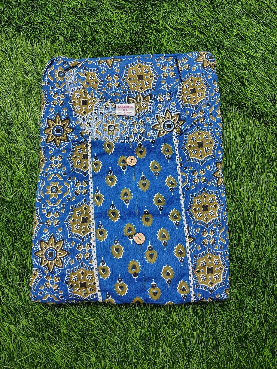 This chic South‑Indian inspired 2‑piece kurti set features a breezy tunic with subtle temple‑border or ethnic.
