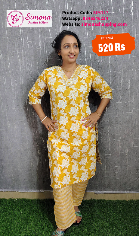 A 2-piece set kurti in South India typically includes a stylish kurti paired with matching