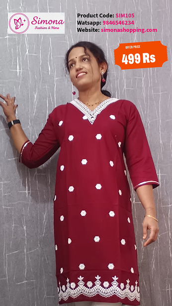 Elegant South Indian kurti adorned with intricate embroidery, blending tradition with timeless style.
