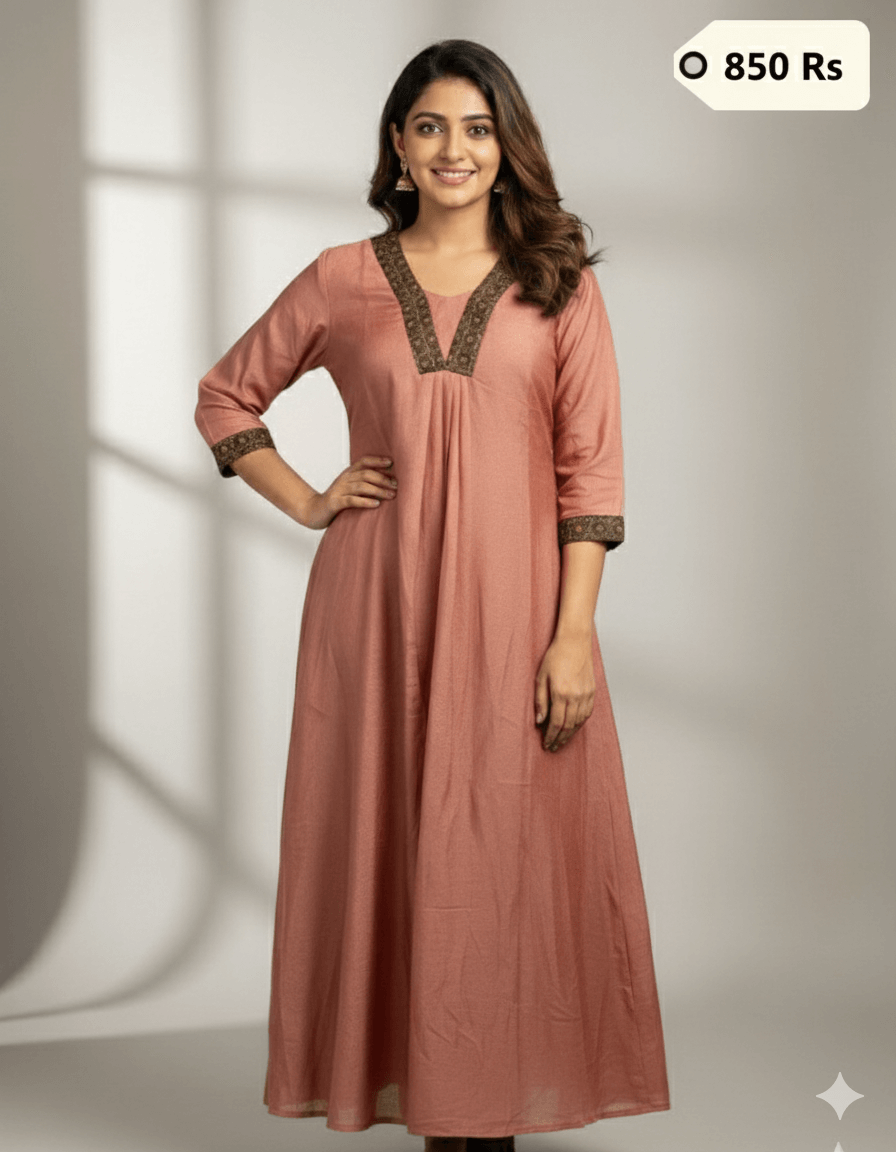 Jewel neck kurti features a round, collarless neckline that sits high, near the base of the throat, much like a necklace or “jewel” would.